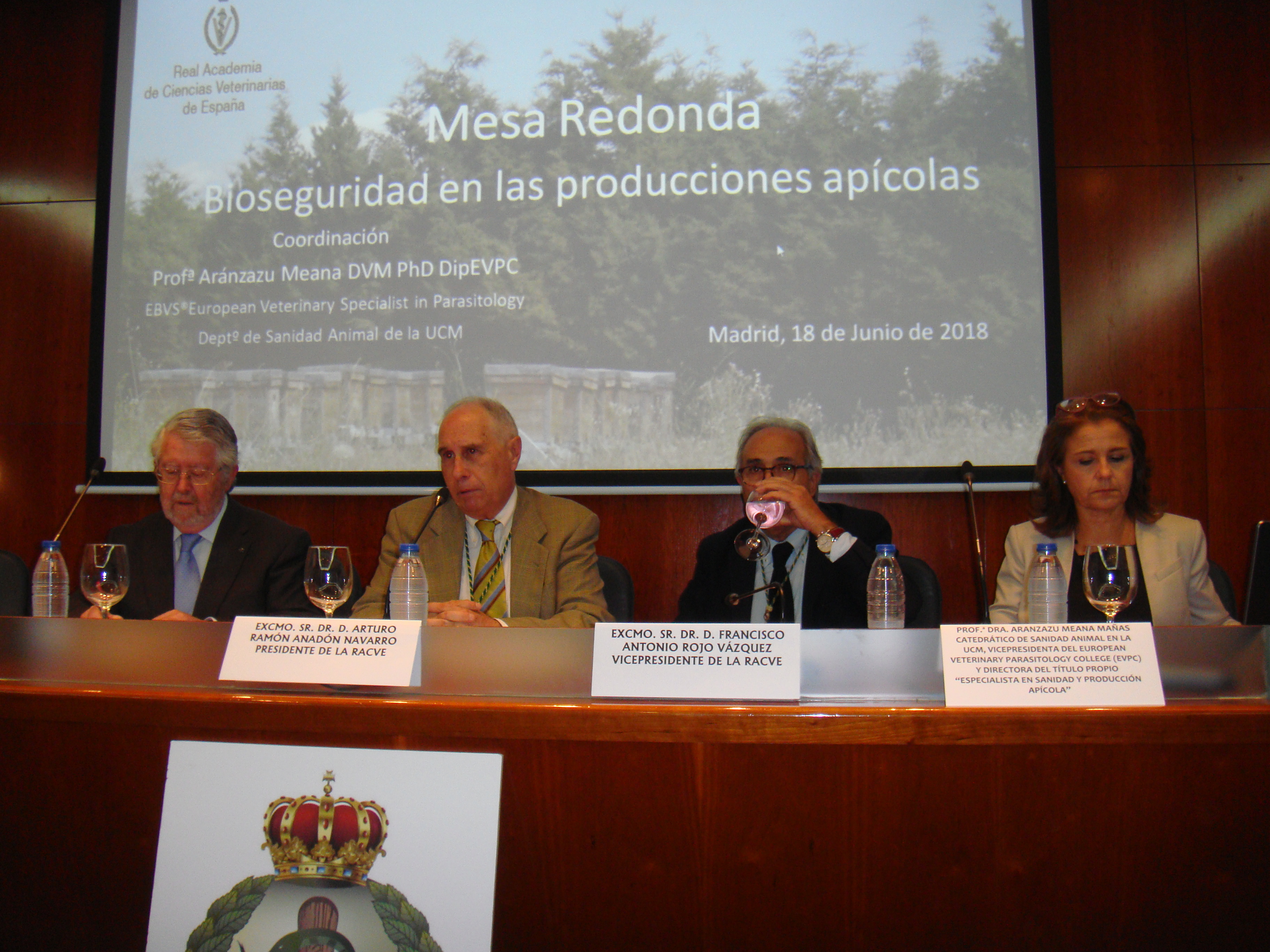 El pasado lunes, día 18 de junio, la Real Academia de Ciencias Veterinarias de España celebró sesión para tratar en mesa redonda la “Bioseguridad en las producciones apícolas”. La sesión la presidió el Dr. Arturo Anadón Navarro, presidente de la RACVE. Le acompañaban en la mesa...