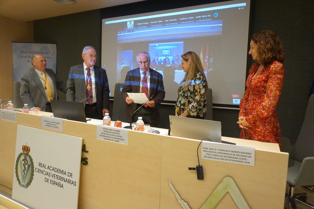 La sesión fue presidida por el Dr. Arturo R. Anadón Navarro, Presidente de la RACVE y estuvo acompañado en el estrado por el Ilmo. Sr. D. Felipe Vilas Herranz, Presidente del Ilustre Colegio de Veterinarios de Madrid, la Ilma. Sra. Consuelo Serres Dalmau, Decana de la Facultad de Veterinaria de la UCM y el Dr. Salvio Jiménez Pérez, Secretario General de la RACVE.