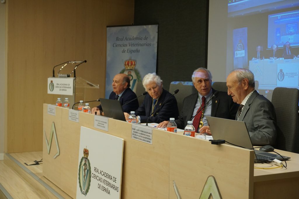 La sesión fue presidida por el Dr. Arturo R. Anadón Navarro, Presidente de la RACVE y estuvo acompañado en el estrado por el Excmo. Sr. Dr. D. Antonio Bascones Martínez, Presidente de la Real Academia de Doctores de España, El Excmo Sr. Dr. D. Pedro Guillén García, Académico de Honor de la RACVE, quien coordinó la conferencia. y el Excmo. Sr. D. Salvio Jiménez Pérez, Secretario General de la RACVE.