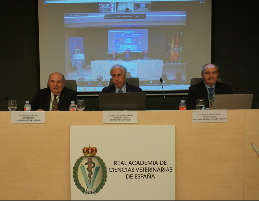 La sesión estuvo presidida por el Excmo. Sr. D. Arturo R. Anadón Navarro, Presidente de la RACVE, acompañado en el estrado por el Excmo. Sr. D. Salvio Jiménez Pérez, Vicepresidente y por el conferenciante Dr. Aparicio Tovar.