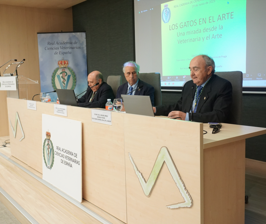 El Dr. Aparicio tomó la palabra en primer lugar para exponer la conferencia: Los gatos del Prado: Una mirada desde la veterinaria y el arte, cediendo a continuación la palabra a la Dra. Subrova quien siguió con la exposición del tema.