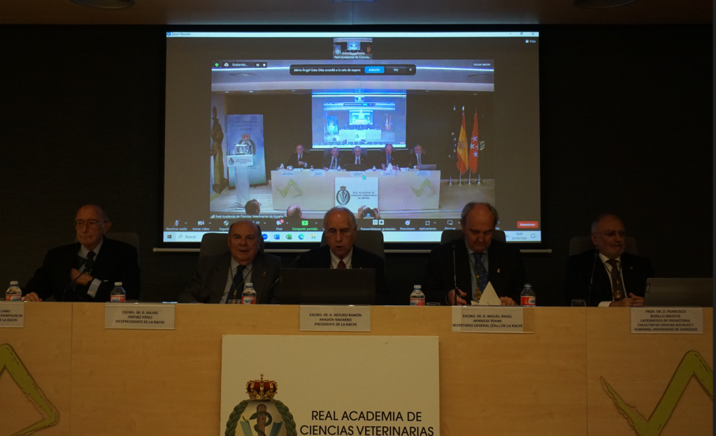 El pasado lunes día 23 de octubre intervinieron de manera presencial en la sede de la RACVE, el Prof. Dr. D. Francisco Burillo Mozota, Catedrático de Prehistoria, Facultad de Ciencias Sociales y humanas, Universidad de Zaragoza y el Excmo. Sr. D. Jaime Lamo de Espinosa y Michells de Champourcin, Académico de Honor de la RACVE.