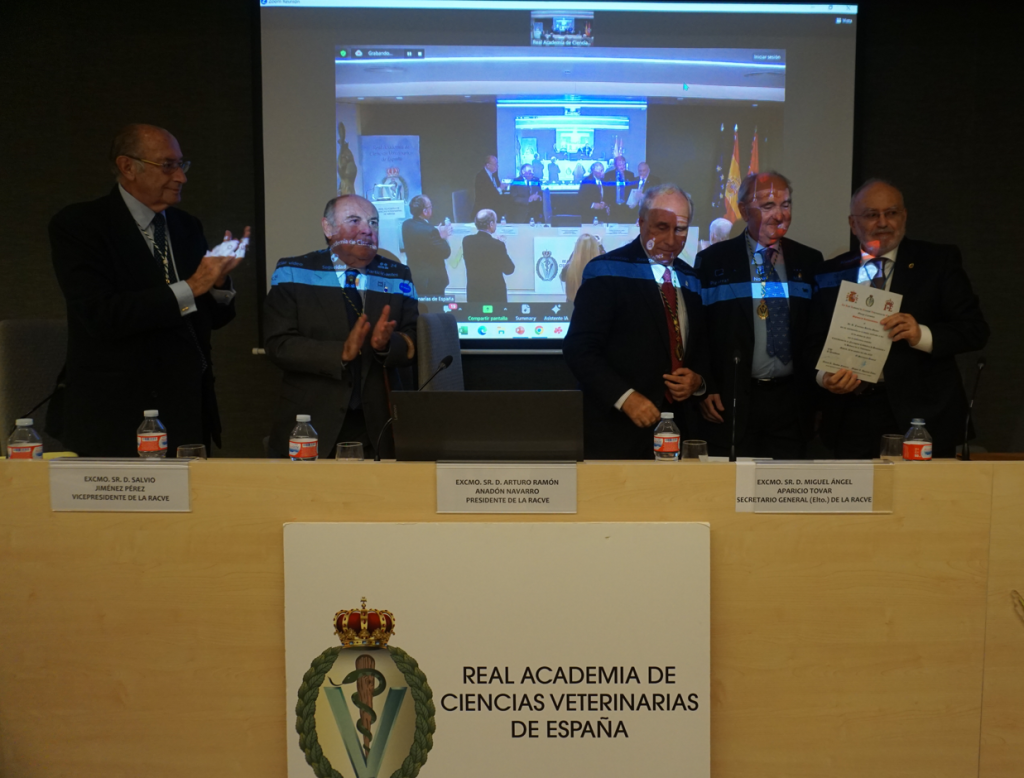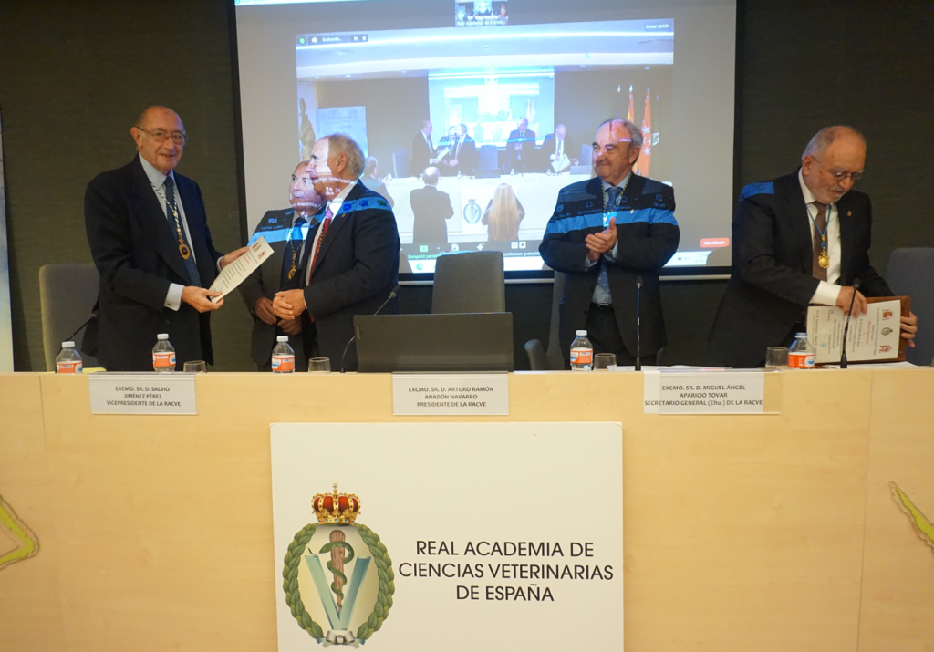 La sesión fue presidida por el Excmo. Sr. D. Arturo R. Anadón Navarro, Presidente de la RACVE, que estuvo acompañado en el estrado por el Excmo. Sr. Dr. D. Salvio Jiménez Pérez, Vicepresidente de la RACVE, y el Excmo. Sr. Dr. D. Miguel Ángel Aparicio Tovar, Secretario General de la RACVE.