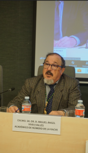 La sesión fue presidida por el Excmo. Sr. D. Arturo R. Anadón Navarro, Presidente de la RACVE, que estuvo acompañado en el estrado por el Excmo. Sr. D. Miguel Ángel Aparicio Tovar, Secretario General de la RACVE y el Excmo. Sr. D. Miguel Ángel Vives Vallés, Académico de Número de la RACVE quien hizo la presentación del ponente.