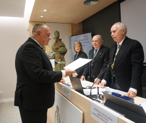 Finalmente el Sr. Presidente, en nombre de S.M. el Rey, les impuso las medallas correspondientes y les hizo entrega de los documentos que les acreditan como Académicos Correspondientes Extranjeros de la Real Academia de Ciencias Veterinarias de España. Tras ello levantó la sesión.