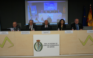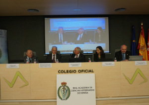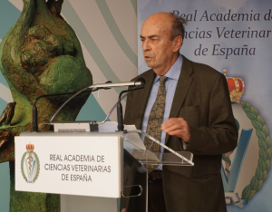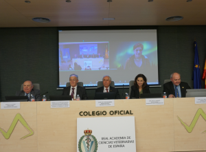 La sesión, en formato mixto, estuvo presidida por el Excmo. Sr. D. Arturo Anadón Navarro. Le acompañaron en la mesa presidencial , el Excmo. Sr. D. Felipe Vilas Herranz, Presidente del Ilustre Colegio Oficial de Veterinarios de Madrid y Académico de Honor de la RACVE, la Ilma. Sra. D.ª Consuelo Serres Dalmau, Decana de la Facultad de Veterinaria de la UCM, el Excmo. Sr. D. Salvio Jiménez Pérez, Vicepresidente de la Real Academia y el Excmo. Sr. D. Miguel Ángel Aparicio Tovar, Secretario General de la Real Academia.