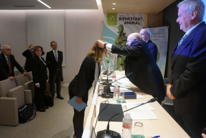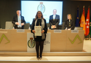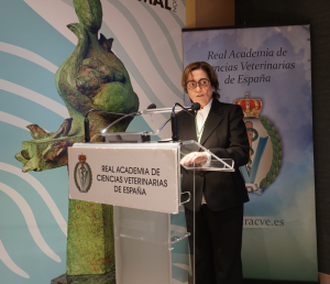 A continuación el Sr. Presidente, y en nombre de S.M. el rey de España, le impuso la medalla n.º 33 y le hizo entrega del documento que le acredita como Académica de Número de la Real Academia de Ciencias Veterinarias de España.