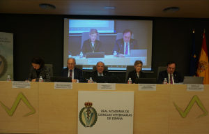 La sesión fue presidida por el Excmo. Sr. D. Salvio Jiménez Pérez, Presidente de la RACVE, que estuvo acompañado en el estrado por el Ilmo. Sr. D. Felipe Vilas Herranz, Presidente del Ilustre Colegio Oficial de Veterinarios de Madrid, la Excma. Sra. D.ª María del Carmen Cuéllar Cariñanos, Vicesecretaria de la Corporación y el Excmo. Sr D. Raúl Sánchez Sánchez, Académico de Número y Presidente de la Sección 3ª de la RACVE, quien hizo la presentación de la ponente.