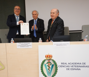 La sesión fue presidida por el Excmo. Sr. D. Salvio Jiménez Pérez, Presidente de la RACVE, que estuvo acompañado en el estrado por el Excmo. Sr. D. Arturo R. Anadón Navarro, Académico de Número y Presidente de Honor de la Corporación.