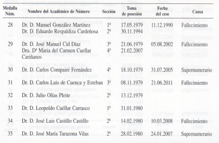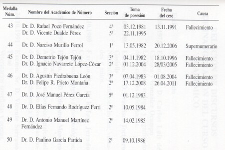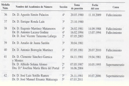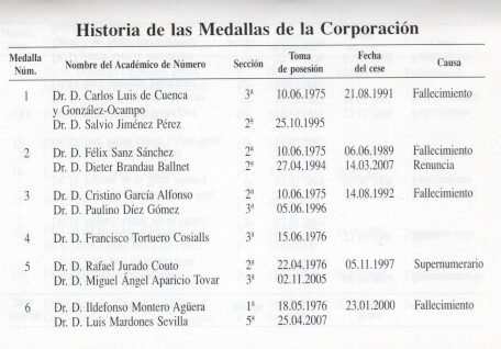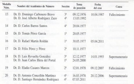 Los señores Académicos, en los actos oficiales, lucirán sobre el pecho, en forma de medalla, el escudo de la Real Academia, pendiente de un cordón verde entrelazado con dorado, para los Académicos de Número; cordón verde entrelazado con blanco, para los Académicos Correspondientes y color blanco entrelazado con verde, para los Académicos de Honor. Todos los Académicos, cualquiera que fuera su condición, deberán estar adscritos a una de las secciones, que figuran en el artículo 15 de estos Estatutos, y remitirán a la Academia, con destino a los fondos bibliográficos de la misma, un ejemplar de sus publicaciones.