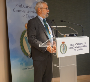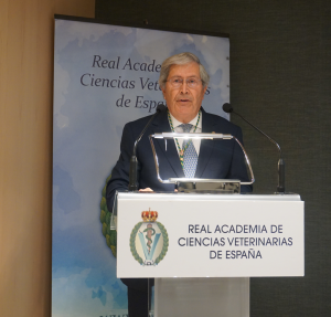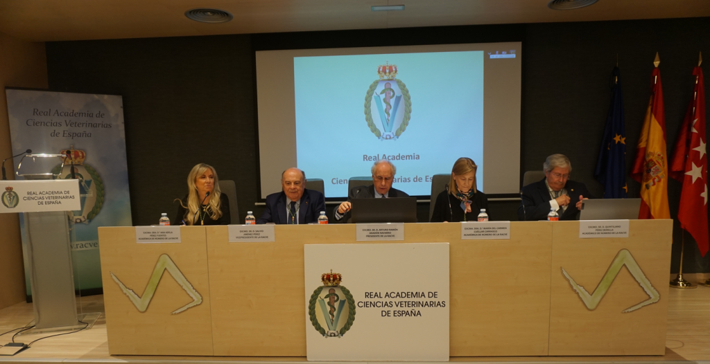 Presidió la Sesión el Excmo. Sr. D. Arturo Anadón Navarro, Presidente de la RACVE. Le acompañaban en la mesa el Excmo. Sr. D. Salvio Jiménez Pérez, Vicepresidente, y los Académicos de Número Excma. Sra. D.ª Ana A. Pérez Fuentes, Excmo. Sr. D. Quintiliano Pérez Bonilla y Excma. Sra. D.ª María del Carmen Cuéllar Cariñanos.